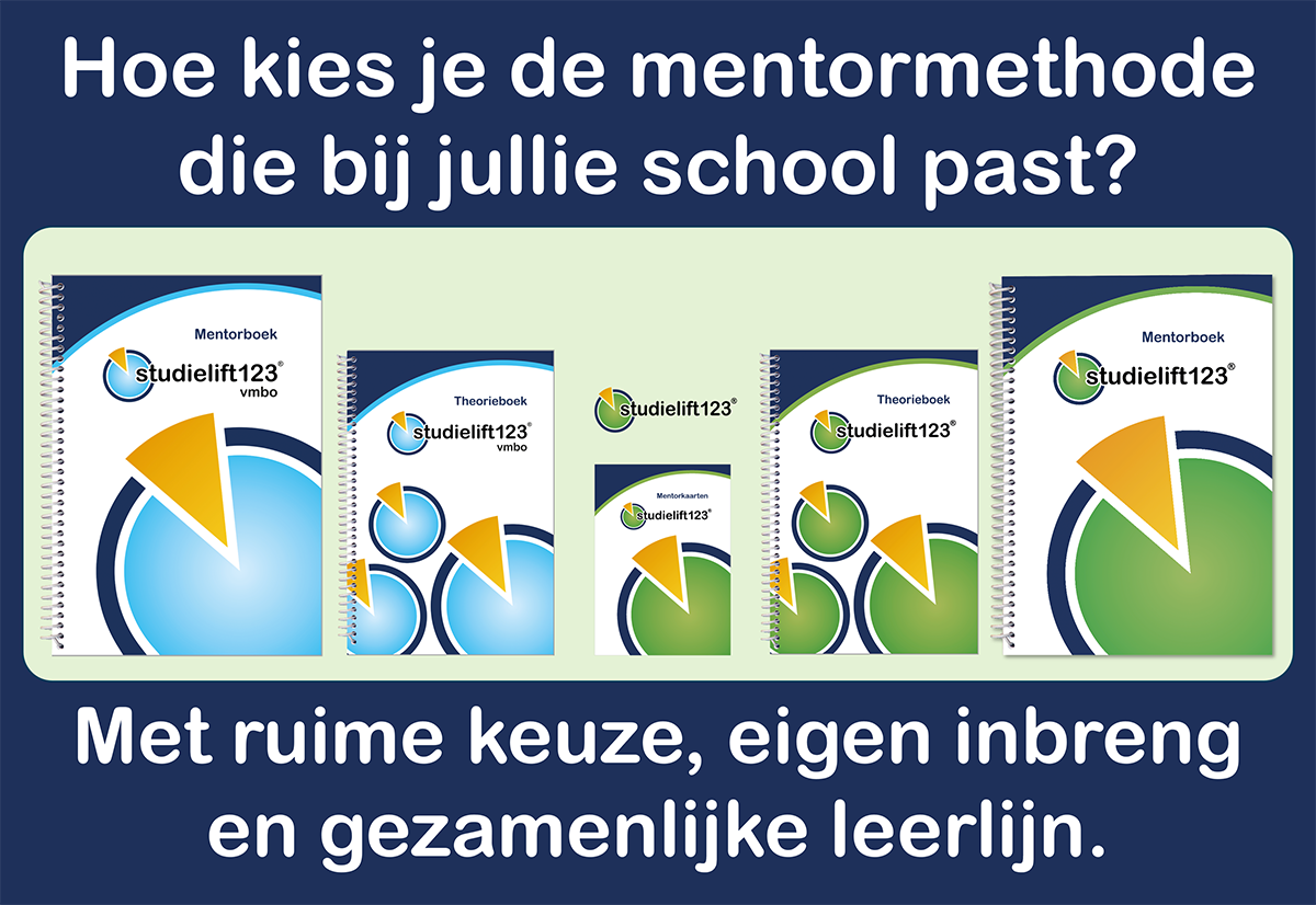 De all-in one mentormethode Studielift123 biedt structuur, met voldoende keuze, zonder dicht te timmeren. De methode geeft richting, maar laten ruimte voor wat er in de groep speelt en voor wat een individuele leerling nodig heeft.
